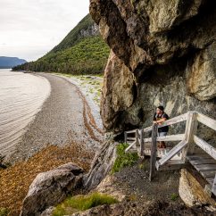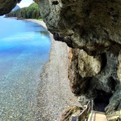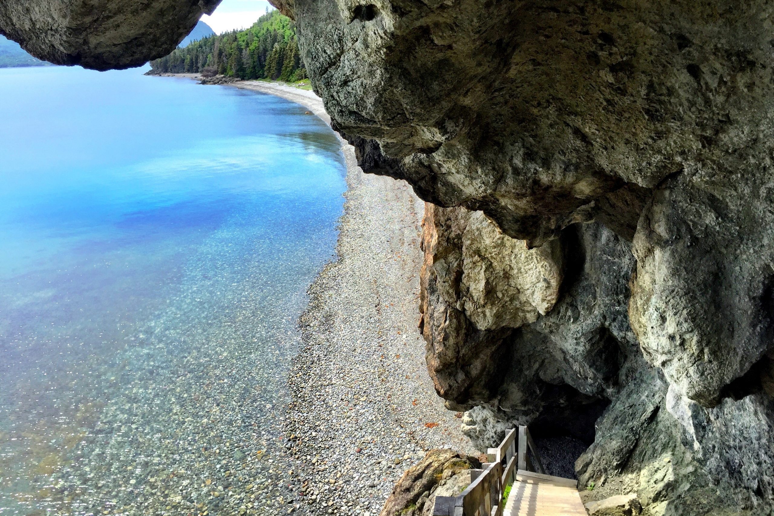 The Governor’s Staircase on the Lark Harbour Head Trail is not to be missed. It faces Governor’s Island, it descends from the main path through 450 million year old volcanic rock to a gorgeous cobble beach. Don’t get too distracted by the view though; as you descend watch for low overhangs and while on the beach, keep an eye on the tide or you may get your shoes a little wet!