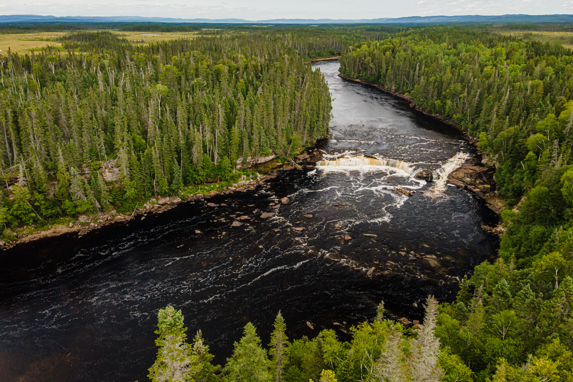 If it takes more than rushing river rapids to impress you, there’s nothing quite like the roar and spray of a waterfall. Cascading over the bedrock on the Humber River, Big Falls is almost 87 metres wide and three meters high. A salmon channel was created by blasting and from late June to mid-August you can see salmon leaping the falls as they try to reach their spawning grounds upstream!