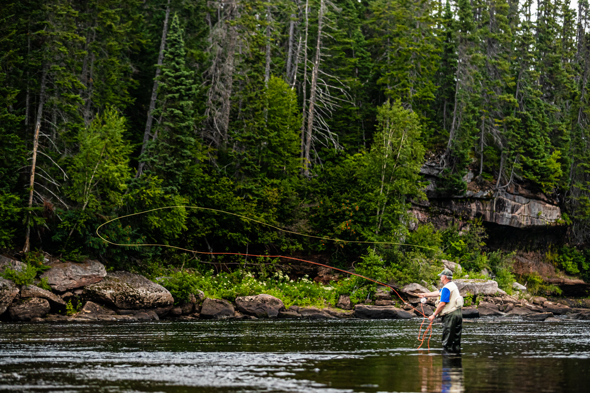 Sir Richard Squires Memorial Park is a prime location for anglers. In fact, Big Falls is known world-wide for its quality salmon angling. From mid June to late August you can spot them leaping Big Falls. Likewise, the mighty Humber River is teeming with trout. Favourite fishing spots like Piercey’s Hole. Goosney’s Rock and Wendy’s Pool abound, named for or by the fishermen who frequented them. Cast your rod and you should have no trouble hooking a big one. Landing it is another story! Residents of the province must obtain a salmon license and two-person dories are available for rent to anyone holding a valid license. Angling is permitted within all provincial parks. Visitors are responsible for following all regulations, to find out more, visit Fisheries and Oceans Canada. A salmon channel was created by blasting and between late June and mid-August you can usually see salmon leaping as they try to make their way upstream to spawn.