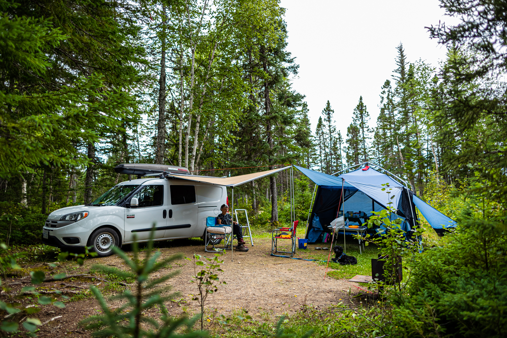 Dogs are welcome in all provincial parks and Sir Richard Squires Memorial Park is no exception. And with three camping loops and two and a half kilometers of gravel park road through luscious forest, it would be a real shame to leave your canine buddies behind. Dogs must be leashed and be sure to clean up after your pet.